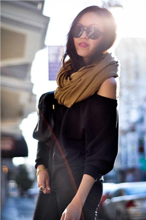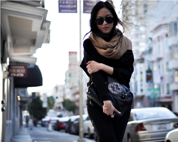 My outfit for date night with the hubby! After a long, productive meeting-filled workweek (CEO from Paris was in town) I was all too happy to change into Friday night gear. Tonight it consists of a slouchy, off the shoulder sweater from Lamixx and my zipper-iffic Levi’s jeans.